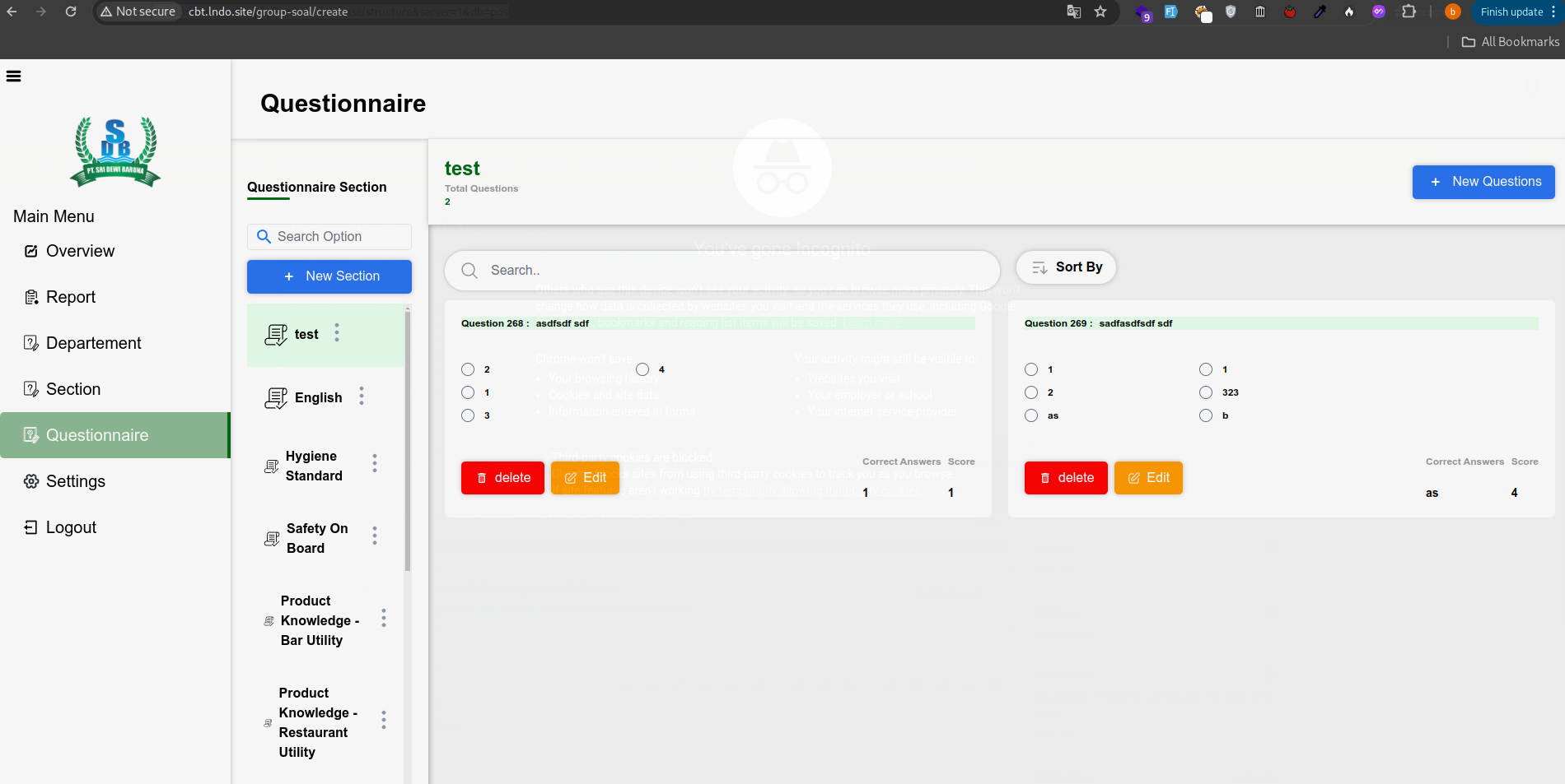 this webapp develop using laravel for managing and reporting user result examp, my role is a progarmer